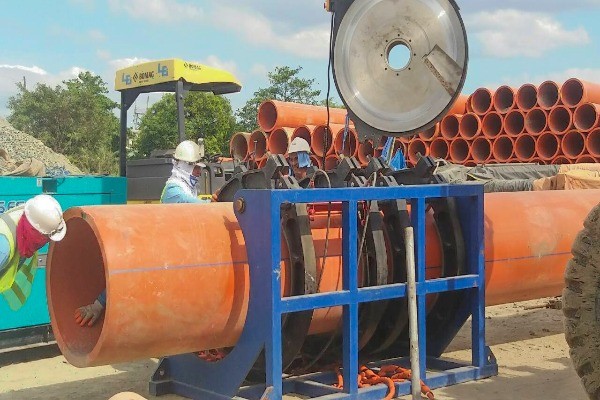 Pipelaying of various pipes with sizes ranging from 100 mm to 1100 mm diameter with a total distance of 4.3 km for the gravity sewer lines and 3.3 km for the pumping mainline